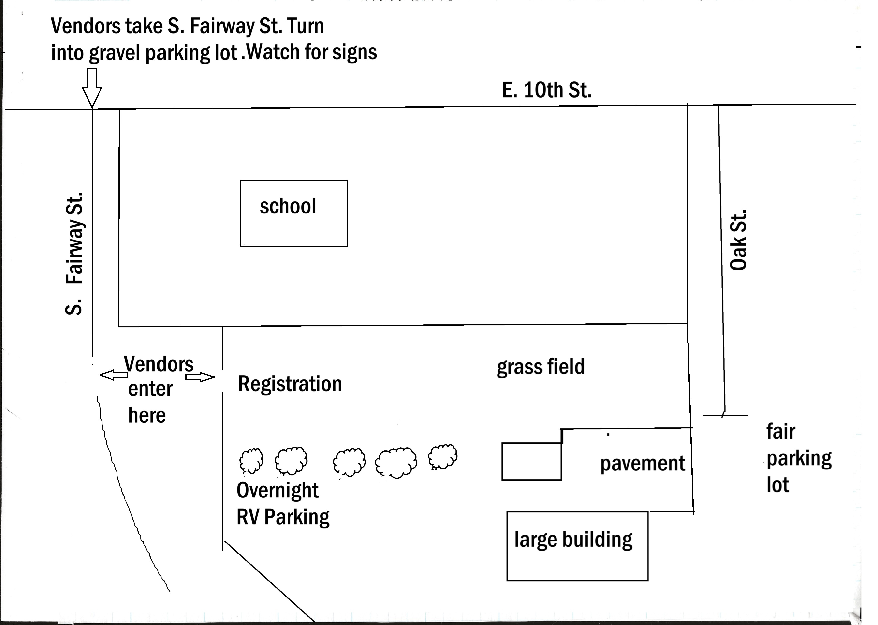 Payment is by cash or personal check – no credit or debit cards accepted. Print and complete the Swap Meet Flyer and Registration Form below and mail along with your check to: YOCC, PO Box 2023, Richland, WA 99352 Swap Meet Flyer and Registration (PDF) Communication to Vendors (PDF) Vendors Entrance Map (JPG) Building Spaces Map (JPG) Pavement Spaces Map (JPG) Grass Field Spaces Map (JPG) Note that maps are not to scale. Large site maps will be at the registration tables showing taken and available spaces during the days of the Swap Meet. |